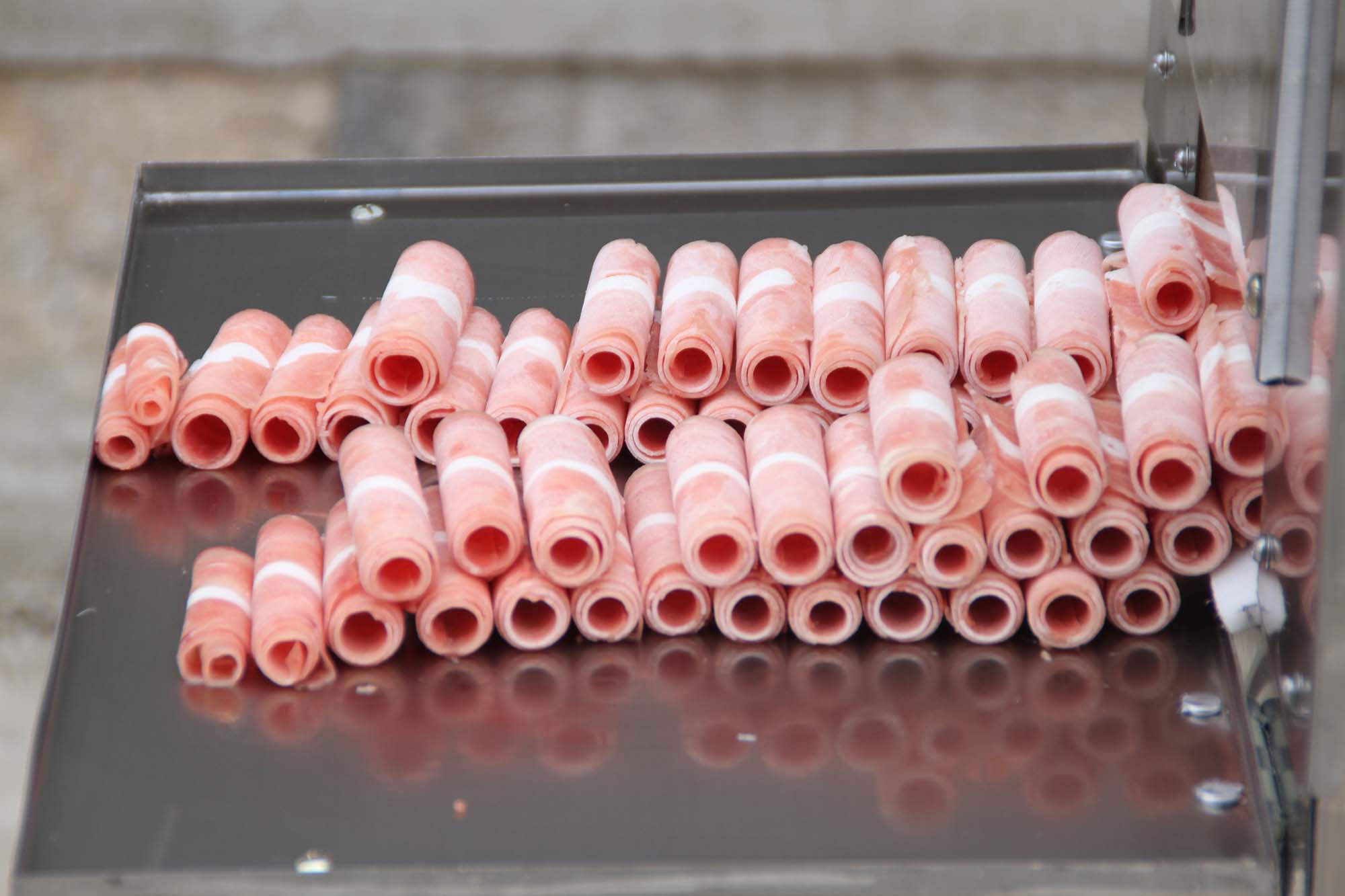 鴻祥瑞數(shù)控切片機HXR-S2型一次可以切2卷(板)羊肉或肥牛,鴻祥瑞數(shù)控切片機采用西門子PLC控制,步進電機傳動,徹底解決了機械切片機故障率高的難題,真正意義上實現(xiàn)了全自動化。紅外線感應安全防護裝置(選裝),公司通過市場調研,特研發(fā)一次性刀具,解決部分客戶磨刀難的問題。雙導向推進器,自動進退,起刀高度18CM,可以立著切肥牛板,調整厚薄不用停機,可根據(jù)所需要的厚度在數(shù)控開關自動加減,每小時可切肉50-100公斤,工作臺采用食品專用有機塑料板制成,保證食品安全、衛(wèi)生,肉卷無需解凍,可直接上機操作,并可切出多種卷形(粗卷、細卷、長卷),成形整齊、美觀,并成排列狀,容易包裝,加工效率高、安全、節(jié)省人工。是大型火鍋店、大中型牛羊肉批發(fā)商的理想選擇。