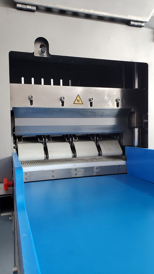 本設(shè)備可以高效的應(yīng)用在牛排、培根、扣肉、五花肉、火腿、牛羊肉等各種肉類的高速切塊、切絲、切片、切卷工作中。